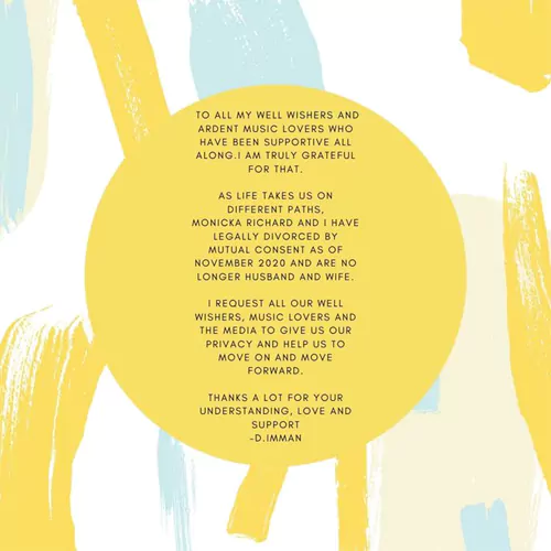 ఇమ్మాన్ విడాకుల ప్రకటన పలువురిని షాక్ కి గురి చేసి ఉండొచ్చు. కానీ వారి విడాకుల గురించి ఆయన సన్నిహితులకు ముందే తెలుసని తెలుస్తోంది. ఇమ్మాన్ కూడా తన ట్వీట్ లో 2020, నవంబర్ నాటికే విడాకులు తీసుకున్నట్లు తెలిపారు. కానీ అధికారికంగా మాత్రం తాజాగా ప్రకటించారు.