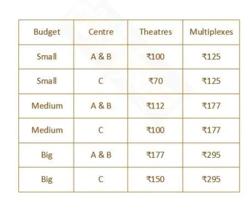 తెలంగాణ ఫిల్మ్ ఛాంబర్ ప్రతిపాదించిన కొత్త ధరలు ఆగస్టు 1 నుంచి రాష్ట్రంలో అమలులోకి రానున్నాయట. ఈ కొత్త ధరలలో భాగంగా సినిమాలను స్మాల్, మీడియం, బిగ్ బడ్జెట్ అంటూ మూడు కేటగిరీలుగా విభజించారు. స్మాల్ బడ్జెట్ సినిమాలకు A,B సెంటర్లలో సింగిల్ స్క్రీన్ లో అధికంగా రూ.100, మల్టీప్లెక్స్ లలో రూ.125 కాగా, C సెంటర్స్ లో రూ.70, రూ.125 గా ఉండనున్నాయి. మీడియం బడ్జెట్ సినిమాలకు A,B సెంటర్లలో రూ.112, రూ.177, C సెంటర్స్ లో రూ.100, రూ.177 ఉంటాయి. ఇక భారీ బడ్జెట్ సినిమాలకు A,B సెంటర్లలో రూ.177, రూ.295, C సెంటర్స్ లో రూ.150, రూ.295 గా ఉండనున్నాయి. అయితే పెద్ద సినిమాలకు అధికంగా రూ.295 ప్రతిపాదించడంపై ప్రేక్షకుల నుంచి వ్యతిరేకత వ్యక్తమవుతోంది. చిన్న సినిమాలకు అధికంగా రూ.100, మీడియం రేంజ్ సినిమాలకు అధికంగా రూ.150, పెద్ద సినిమాలకు అధికంగా రూ.200 నిర్ణయిస్తే బాగుంటుందని.. అప్పుడే ప్రేక్షకులు థియేటర్స్ కి రావడంతో పాటు, రిపీటెడ్ ఆడియన్స్ పెరుగుతారని అంటున్నారు.
