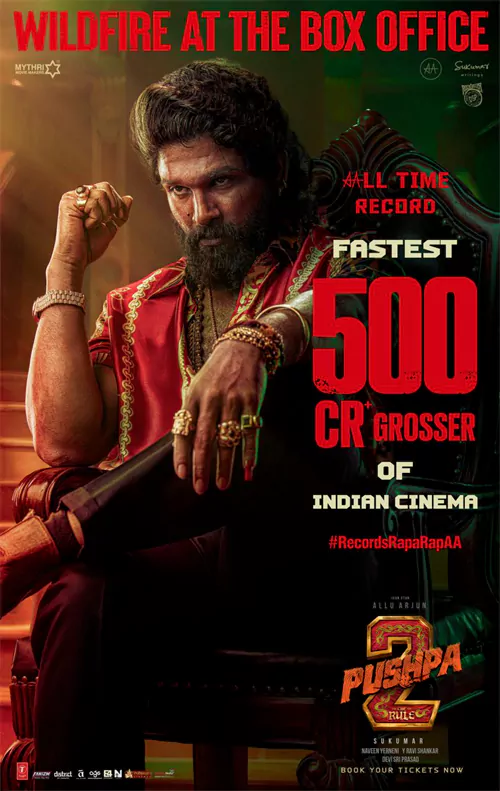 "THE BIGGEST INDIAN FILM is a WILDFIRE AT THE BOX OFFICE and is SHATTERING RECORDS. Pushpa 2: The Rule is now THE FASTEST INDIAN FILM to collect a gross of 500 CRORES WORLDWIDE," Mythri Movie Makers and Sukumar Writings proudly stated.