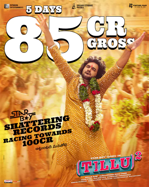 ప్రేక్షకులను మెప్పించేలా సినిమా తీస్తే.. యంగ్ హీరో సినిమాకి కూడా స్టార్ హీరో సినిమా రేంజ్ లో కలెక్షన్లు వస్తాయని 'టిల్లు స్క్వేర్'(Tillu Square) రుజువు చేస్తోంది. బాక్సాఫీస్ దగ్గర ఈ సినిమా జోరు మామూలుగా లేదు. కేవలం ఐదు రోజుల్లోనే రూ.85 కోట్ల గ్రాస్ రాబట్టిన 'టిల్లు స్క్వేర్'.. రూ.100 కోట్ల మార్క్ దిశగా దూసుకుపోతోంది.