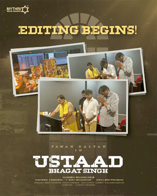'ఉస్తాద్ భగత్ సింగ్'ని పక్కా ప్లానింగ్ తో వీలైనంత త్వరగా పూర్తి చేసి విడుదల చేయడానికి మేకర్స్ సన్నాహాలు చేస్తున్నారు. మూవీ మొదటి షెడ్యూల్ పూర్తయిందో లేదో, అప్పుడే ఎడిటింగ్ వర్క్ కూడా మొదలైంది. బ్లాక్ బస్టర్ షెడ్యూల్ ని పూర్తి చేసుకొని, ఎడిటింగ్ వర్క్ ని ప్రారంభించామని తెలుపుతూ మేకర్స్ ఫోటోలను వదిలారు. అందులో దర్శకనిర్మాతలు పూజ చేస్తూ కనిపించారు. అతి త్వరలోనే బ్లాస్టింగ్ అప్డేట్స్ రాబోతున్నాయని మేకర్స్ పేర్కొన్నారు.
