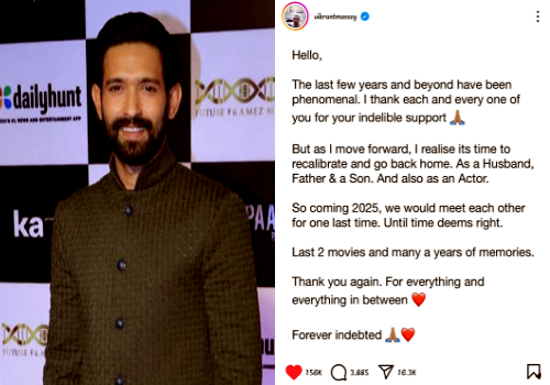 Vikrant Massey, the Bollywood movie and TV actor, has created a storm with his retirement announcement. He stated that he wants to concentrate on his family life going forward and hence, he wants to quit acting. He stated that he will be meeting audiences in theatres for only one last time in 2025.