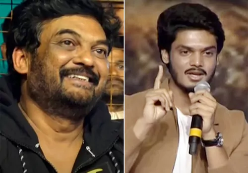 కొడుకు ఎమోషనల్ స్పీచ్ను ఎదురుగా కూర్చొని చూస్తూ, వింటూ తానూ ఎమోషనల్ అయ్యాడు పూరి జగన్నాథ్.