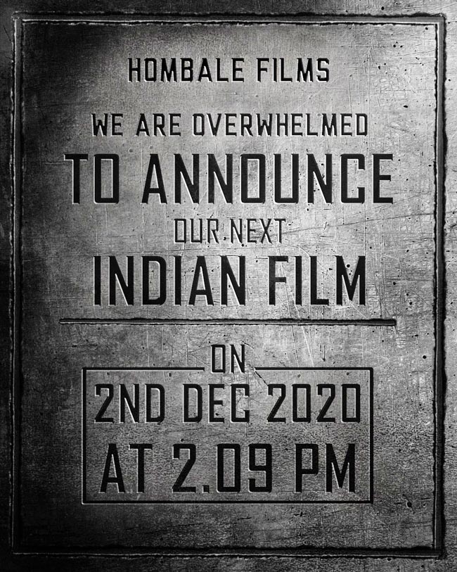 హోంబళే ఫిలిమ్స్ అధినేతలు తమ ట్విట్టర్ హ్యాండిల్ ద్వారా, "డియర్ ఆడియెన్స్, మాకంటే ఎక్కువగా మా సినిమాని మీరెప్పుడూ ప్రేమించారు. ఈ ప్రేమను కొనసాగించడానికీ, ఈ ప్రేమను పొందడానికీ మేం మా తదుపరి ఇండియన్ ఫిల్మ్తో వస్తున్నాం. డిసెంబర్ 2న 2:09 గంటలకు వచ్చే మా అనౌన్స్మెంట్ కోసం మీ హృదయాన్ని తెరిచి ఉంచండి. #HombaleFilms7 @vkiragandur @hombalefilms” అని రాసుకొచ్చారు. ఆ అనౌన్స్మెంట్ వచ్చిన మరుక్షణం నుంచే, కామెంట్స్ సెక్షన్లో తామెంతగా ఆ ప్రకటనకు ఉత్తేజితులయ్యామో తెలియజేస్తూ వస్తున్నారు ఫ్యాన్స్.