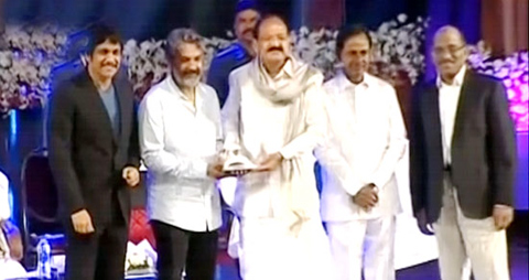 బాహుబలితో భారతీయ సినిమా గర్వపడేలా చేసి దర్శకధీరుడు ఎస్ఎస్. రాజమౌళికి 2017వ సంవత్సరానికి గానూ ఏఎన్నార్ జాతీయ అవార్డు వరించిన విషయం తెలిసిందే. ఇవాళ హైదరాబాద్ శిల్పకళా వేదికలో అవార్డు పురస్కార కార్యక్రమం జరిగింది. దీనికి ముఖ్యఅతిథులుగా ఉప రాష్ట్రపతి వెంకయ్యనాయుడు, తెలంగాణ ముఖ్యమంత్రి కేసీఆర్ హాజరయ్యారు. అనంతరం వెంకయ్య చేతుల మీదుగా ఏఎన్నార్ అవార్డ్ను రాజమౌళికి బహుకరించారు.