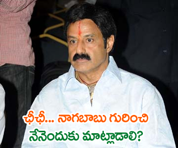 బాలకృష్ణ వ్యాఖ్యలపై నాగబాబు తీవ్ర ఆగ్రహం వ్యక్తం చేశారు. నటుడిగా, నిర్మాతగా తాను చాలా బాధపడ్డాననీ... తెలుగు చిత్ర పరిశ్రమకు తెలంగాణ ప్రభుత్వానికి బాలకృష్ణ క్షమాపణలు చెప్పాలని నాగబాబు డిమాండ్ చేశారు. ఒక ఇంటర్వ్యూలో బాలకృష్ణ వద్ద నాగబాబు గురించి ప్రస్తావించగా "నేనేమీ మాట్లాడలేదు. అతనే మాట్లాడుతున్నాడు. నేనెందుకు మాట్లాడాలి. ఛీఛీ" అని అన్నారు.