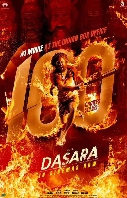నాని, కీర్తి సురేష్ జంటగా శ్రీకాంత్ ఓదెల దర్శకత్వంలో తెరకెక్కిన సినిమా 'దసరా'. ఎస్ఎల్వీ సినిమాస్ బ్యానర్ పై సుధాకర్ చెరుకూరి నిర్మించిన ఈ చిత్రం మార్చి 30 న విడుదలైంది. భారీ అంచనాలతో విడుదలైన ఈ మూవీ రికార్డు స్థాయి ఓపెనింగ్స్ రాబట్టింది. వీక్ డేస్ లోనూ అదే జోరుని కొనసాగిస్తూ మొదటి వారం పూర్తయ్యేసరికి వంద కోట్ల క్లబ్ లో చేరింది.