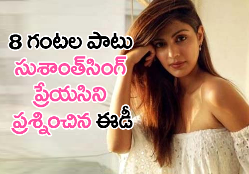 బాలీవుడ్ యాక్టర్ దివంగత సుశాంత్సింగ్ రాజ్పుత్ గాళ్ఫ్రెండ్ రియా చక్రవర్తిని ఎన్ఫోర్స్మెంట్ డైరెక్టరేట్ (ఈడీ) ఏకంగా ఎనిమిది గంటల పైగా ప్రశ్నించింది. శుక్రవారం రాత్రి 8:35 నిమిషాలకు ఆమె ఈడీ ఆఫీస్ నుంచి బయటకు వచ్చింది. ఆమెకు తోడుగా తండ్రి, సోదరుడు ఉన్నారు.