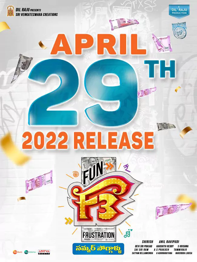 2019 సంక్రాంతికి వచ్చి బ్లాక్బస్టర్ హిట్టయిన 'ఎఫ్2'కి సీక్వెల్గా 'ఎఫ్3' వస్తోంది. ఒరిజినల్ మూవీ తరహాలోనే సీక్వెల్ను కూడా సంక్రాంతికి తీసుకురావాలని నిర్మాత దిల్ రాజు మొదట భావించారు. కానీ 'ఆర్ఆర్ఆర్', 'రాధే శ్యామ్' సినిమాలు సంక్రాంతికి ఫిక్సవడంతో ఫిబ్రవరికి విడుదల తేదీని మార్చారు. ఇప్పుడు మారిన సమీకరణాలతో మరోసారి రిలీజ్ డేట్ను పోస్ట్పోన్ చేశారు.