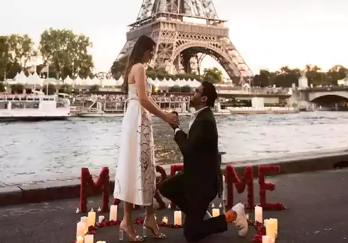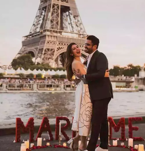 హన్సిక కాబోయే భర్త సొహేల్, పారిస్లోని ఈఫిల్ టవర్ ముందు మోకాలిపై కూర్చొని ఆమెకు పెళ్లి ప్రపోజ్ చేశాడు. ఈ ప్రతిపాదనకు సంబంధించిన ఫోటోలు సోషల్ మీడియాలో వైరల్ అవుతున్నాయి.
