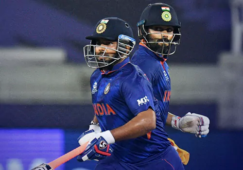నాలుగో నంబర్ బ్యాటర్గా బరిలోకి దిగిన సూర్యకుమార్ యాదవ్ ఉన్న కాసేపు బెదురు లేకుండా ఆడి, ఒక ఫోర్, ఒక సిక్స్ కొట్టాడు. విరాట్, సూర్యకుమార్ కుదురుకుంటున్నారని అభిమానులు ఆశపడుతున్న సమయంలో సూర్యను ఫాస్ట్ బౌలర్ హసన్ అలీ ఔట్ చేశాడు. అనంతరం వచ్చిన రిషభ్ పంత్ తన వంతు బాధ్యతను చక్కగా నిర్వర్తించాడు. నాలుగో వికెట్కు విరాట్, రిషభ్ 37 బంతుల్లో 50 పరుగులు చేశారు. చివరకు 30 బంతుల్లో 39 రన్స్ చేసి బౌలర్ షాదాబ్ ఖాన్కు రిటర్న్ క్యాచ్ ఇచ్చి ఔటయ్యాడు రిషభ్. అతడి స్కోరులో 2 ఫోర్లు, 2 సిక్సులు ఉన్నాయి.