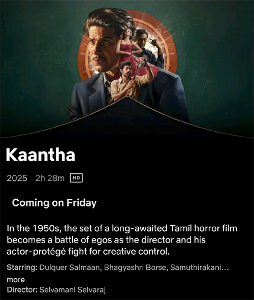 విభిన్న చిత్రాలతో వివిధ భాషల ప్రేక్షకులకు చేరువైన మలయాళ స్టార్ దుల్కర్ సల్మాన్(Dulquer Salmaan) నటించిన రీసెంట్ మూవీ 'కాంత'(Kaantha). తమిళ్ లో రూపొందిన ఈ చిత్రం తెలుగులోనూ విడుదలైంది. నవంబర్ 14న థియేటర్లలో అడుగుపెట్టిన కాంత సినిమా.. ప్రశంసలు అయితే అందుకుంది కానీ, కాసులు కురిపించలేకపోయింది. ఇప్పుడు ఈ మూవీ ఓటీటీలో అలరించడానికి సిద్ధమైంది.