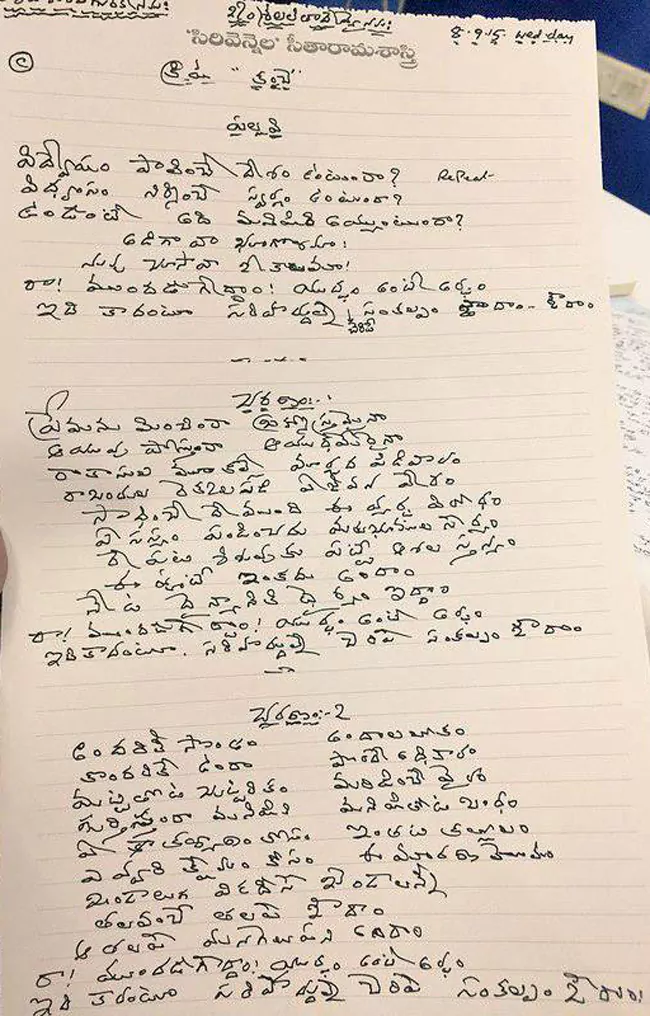 సీతారామశాస్త్రి చేతిరాత.. 'కంచె'లోని పాట!