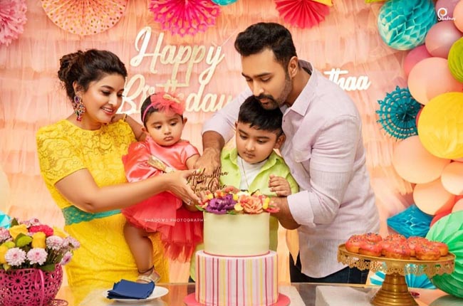 స్నేహ కూతురి బర్త్డే.. కూతురితో మీనా సందడి!
