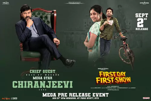 సెప్టెంబర్ 2న మరో సినిమా విడుదల కాబోతోంది. అదే 'ఫస్ట్ డే ఫస్ట్ షో'. ఈ చిత్రానికి 'జాతిరత్నాలు' డైరెక్టర్ కేవీ అనుదీప్ కథ అందించగా.. వంశీ, లక్ష్మీనారాయణ దర్శకత్వం వహించారు. ఈ సినిమాతో పూర్ణోదయ పిక్చర్స్ రీఎంట్రీ ఇస్తుండటం విశేషం. ఈ సినిమాకి మెగా ఫ్యామిలీతో పరోక్షంగా సంబంధముంది. ఇది పవన్ క్లాసిక్ ఫిల్మ్ 'ఖుషి' చుట్టూ తిరిగే కథ. ఈ చిత్రంలో తాను ఇష్టపడిన అమ్మాయి అడిగిందని 'ఖుషి' ఫస్ట్ డే ఫస్ట్ షో టికెట్లు సంపాదించడానికి అబ్బాయి పడే అవస్థలను సరదాగా చూపించనున్నారు. ఓ రకంగా ఇది పవన్ పుట్టినరోజున ఫ్యాన్స్ కి ట్రీట్ లాంటి మూవీ అని చెప్పొచ్చు. పైగా రేపు(ఆగస్ట్ 31న) జరగనున్న ప్రీ రిలీజ్ ఈవెంట్ మెగాస్టార్ చిరంజీవి చీఫ్ గెస్ట్ గా రాబోతున్నారు. దీంతో ఈ చిత్రంపై మెగా ఫ్యాన్స్ లో ఆసక్తి మరింత పెరిగింది.