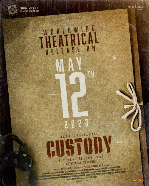 నాగ చైతన్య పుట్టినరోజు కానుకగా నవంబర్ లో విడుదలైన 'కస్టడీ' మూవీ ఫస్ట్ లుక్ కి సూపర్ రెస్పాన్స్ వచ్చింది. ఒంటి మీద గాయాలతో పోలీసు దుస్తులు ధరించి ఉన్న చైతన్యను అనేకమంది పోలీసులు కలిసి బందిస్తున్నట్లుగా ఉన్న పోస్టర్ ఆకట్టుకుంది. తమిళ్ లో 'మానాడు' వంటి బ్లాక్ బస్టర్ అందించిన వెంకట్ ప్రభు దర్శకత్వంలో తెరకెక్కుతున్న సినిమా కావడంతో అక్కినేని అభిమానులతో పాటు సామాన్య ప్రేక్షకుల్లోనూ ఈ చిత్రంపై ఆసక్తి నెలకొంది. తాజాగా మేకర్స్ ఈ సినిమా రిలీజ్ డేట్ ని అనౌన్స్ చేశారు. 2023, మే 12న ఈ చిత్రాన్ని విడుదల చేయబోతున్నట్లు తెలిపారు.