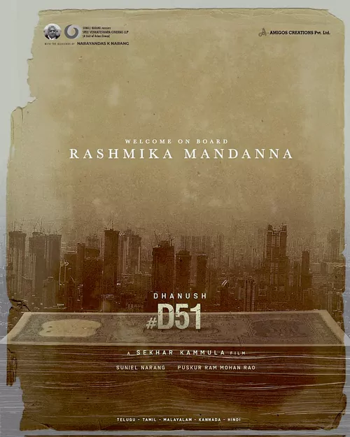 కోలీవుడ్ స్టార్ ధనుష్ హీరోగా నటిస్తున్న 51వ సినిమాకి కమ్ముల దర్శకత్వం వహిస్తున్నారు. పాన్ ఇండియా రేంజ్ లో రూపొందుతోన్న ఈ చిత్రాన్ని శ్రీ వెంకటేశ్వర సినిమాస్, అమిగోస్ క్రియేషన్స్ సంయుక్తంగా నిర్మిస్తున్నాయి. త్వరలోనే ఈ మూవీ షూటింగ్ ప్రారంభం కానుంది. ఈ సినిమాలో హీరోయిన్ గా రష్మిక మందన్న నటిస్తున్నట్లు తాజాగా అధికారికంగా ప్రకటించారు. హీరో ధనుష్ తో పాటు దర్శకుడు కమ్ములతో రష్మికకు ఇదే మొదటి సినిమా కావడం విశేషం. 'పుష్ప'తో పాన్ ఇండియా హిట్ అందుకున్న రష్మిక చేతిలో ప్రస్తుతం 'పుష్ప-2', 'యానిమల్' వంటి క్రేజీ ప్రాజెక్ట్ లు ఉన్నాయి. ఇక ఇప్పుడు 'D51' కూడా పాన్ ఇండియా ప్రాజెక్ట్ కావడంతో సౌత్ తో పాటు నార్త్ లోనూ గుర్తింపు ఉన్న రష్మికను చిత్ర బృందం ఎంపిక చేసినట్లు సమాచారం.