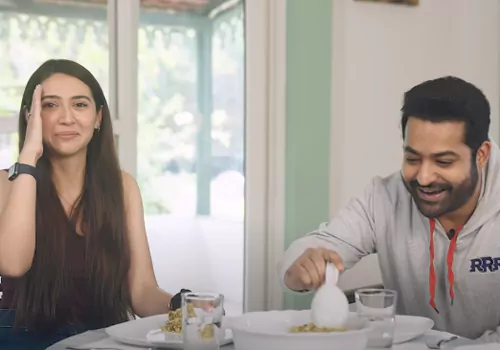 'ఆర్ఆర్ఆర్' ప్రమోషన్స్ లో భాగంగా బాలీవుడ్ నటి సాహెబా బాలీ హైదరాబాద్ లో తారక్ ని సరదాగా ఫుడ్ బేస్డ్ ఇంటర్వ్యూ చేసింది. తారక్ యాక్టింగ్, డాన్స్ లోనే కాకుండా కుకింగ్ లోనూ దిట్ట అని తెలిసిన సంగతి తెలిసిందే. ఈ క్రమంలో సాహెబాను గెస్ట్ గా భావించిన తారక్.. ఆమెకు హైదరాబాదీ బిర్యానీ, తెలంగాణ చేపల పులుసు, గుంటూరు చికెన్ వడ్డించాడు. ఆ సమయంలో సాహెబా.. ఆర్ఆర్ఆర్ లో రియల్ టైగర్ తో యంగ్ టైగర్ ఫైట్ చేశారా? అని అడగగా.. 'ఏమో.. చేసుండొచ్చు, చేయకపోవచ్చు' అంటూ తారక్ స్పష్టంగా సమాధానం చెప్పకుండా దాటవేశాడు.