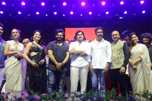 హాస్యబ్రహ్మ బ్రహ్మానందం మాట్లాడుతూ.. "ఈ సినిమాలో నేనొక పాత్ర చేశాను. పవన్ కళ్యాణ్ గారితో కలిసి నటించే అవకాశం రావడం అదృష్టంగా భావిస్తున్నాను. 18-20 సంవత్సరాల వయసు నుంచే నేను ఆయనను చూస్తున్నాను. ఆయన నవ్వు ఎంత స్వచ్ఛంగా, ఎంత అందంగా ఉంటుందో.. ఆయన కూడా అంతే అందమైన మనిషి. సరదాగా నవ్విస్తూ ఉంటారు. మనిషి అంతా మంచితనం, మనిషి అంతా హాస్యం. ఏ రకంగా ఆయన దగ్గరకు వెళ్తే ఆ రకంగా దర్శనం ఇవ్వగల దైవాంశసంభూతుడు మా పవన్ కళ్యాణ్. ఈ సినిమా సూపర్ డూపర్ హిట్ అవ్వాలని మనస్ఫూర్తిగా కోరుకుంటున్నాను. నిర్మాత విశ్వప్రసాద్ గారు పాన్ ఇండియా కాదు, పాన్ వరల్డ్ సినిమాలు తీస్తాను అన్నారు. ఇంతటి గట్స్ ఉన్న నిర్మాత విశ్వప్రసాద్ గారికి ఆల్ ది బెస్ట్" అన్నారు.