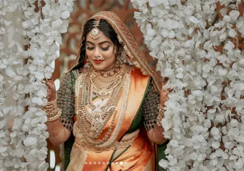 నటి పూర్ణ దీపావళి నాడు తన పెళ్లికి సంబంధించిన ఫోటోలను అభిమానులతో షేర్ చేసుకున్నారు. దుబాయ్కి చెందిన బిజినెస్ మెన్ షానిద్ ఆసిఫ్ అలీతో పూర్ణ అలియాస్ షామ్నా కాసిం వివాహం ఘనంగా జరిగిన విషయం తెలిసిందే. ఐతే పూర్ణకి పెళ్లి కానుకుగా ఏమిచ్చారంటూ ఆరా తీస్తున్నారు అభిమానులు, నెటిజన్లు. అందమైన పట్టుచీర, మెడ తిరగనివ్వని బంగారంతో సిగ్గుపడుతూ కనిపించింది పూర్ణ. ఐతే ఇప్పుడు పూర్ణ మెడలో బంగారం సోషల్ మీడియాలో హాట్ టాపిక్ గా మారింది.
