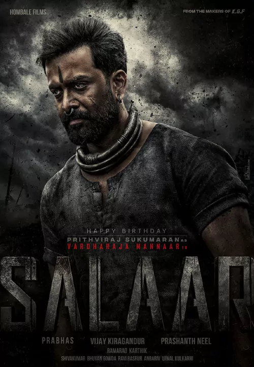 నేడు(అక్టోబర్ 16) పృథ్వీరాజ్ పుట్టినరోజు సందర్భంగా ఆయన పాత్రకు సంబంధించిన ఫస్ట్ లుక్ పోస్టర్ ను విడుదల చేశారు. వర్ధరాజ మన్నార్ గా పృథ్వీరాజ్ లుక్ క్రూరంగా ఆకట్టుకునేలా ఉంది. పేర్లని, ఆహార్యాన్ని బట్టి చూస్తే ఇందులో జగపతిబాబు కొడుకుగా పృథ్వీరాజ్ కనిపించనున్నారని అర్థమవుతోంది. హోంబలే ఫిలిమ్స్ నిర్మిస్తున్న ఈ చిత్రం సెప్టెంబర్ 28, 2023 న ప్రేక్షకుల ముందుకు రానుంది.
