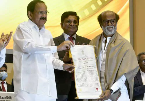 భారతదేశపు అత్యున్నత సినీ పురస్కారం దాదాసాహెబ్ ఫాల్కే అవార్డును ఉపరాష్ట్రపతి ఎం. వెంకయ్యనాయుడు నుంచి అందుకున్నారు సౌత్ ఇండియా సూపర్స్టార్ రజనీకాంత్. సినిమాల్లోకి రాకముందు కర్నాటకలో బస్ కండక్టర్గా పనిచేసిన ఆయన, తన అవార్డును అప్పటి తన పాత బస్ డ్రైవర్ ఫ్రెండ్కు అంకితమివ్వడం విశేషం. తనను సినిమాల్లోకి వెళ్లాల్సిందిగా ఆ స్నేహితుడే తనను ప్రోత్సహించాడని రజనీ చెప్పారు.