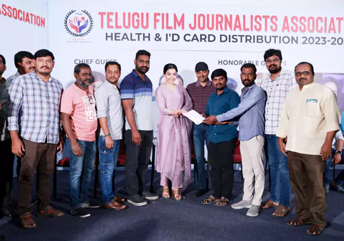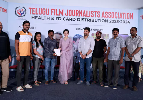 "ఒక యూనియన్ సినిమా ఇండస్ట్రీలోని అందరి క్షేమం కోసం ఆలోచించడం చూస్తే సంతోషంగా ఉంది. మామూలుగా మా సినిమాలకు సంబంధించిన ఏ ఫంక్షన్ జరిగినా మీ జర్నలిస్టులంతా వచ్చి సపోర్ట్ చేస్తారు. ఇప్పుడు మీరు పిలవగానే నేను రావడం హ్యాపీగా ఉంది. మీరంతా బావుండాలి. ఎప్పుడూ నవ్వుతూనే ఉండాలి. నన్ను ఈ కార్యక్రమానికి ఆహ్వానించినందుకు చాలా థ్యాంక్యూ. మిమ్మల్ని కలిసి చాలా రోజులైంది. ఇకపై కలుస్తూనే ఉంటా.." అన్నారు టాలీవుడ్ టాప్ హీరోయిన్లలో ఒకరైన రష్మికా మందన్నా. తెలుగు ఫిల్మ్ జర్నలిస్ట్స్ అసోసియేషన్ సభ్యులకు హెల్త్ ఇన్సూరెన్స్, ఐడీ కార్డుల పంపిణీ కార్యక్రమం సోమవారం సాయంత్రం ప్రసాద్ ల్యాబ్స్లో జరిగింది. ఈ ఈవెంట్కు రష్మిక ముఖ్య అతిథిగా హాజరై ఫిల్మ్ జర్నలిస్టులకు 2023-24 సంవత్సరానికి కార్డులను అందజేశారు.