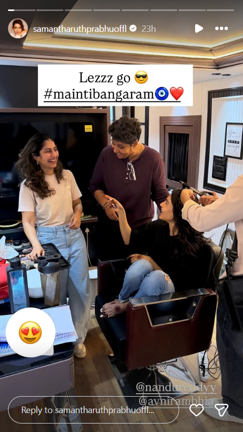 'ఓ బేబీ' తరువాత సమంత-నందిని రెడ్డి కలయికలో వస్తున్న 'మా ఇంటి బంగారం' మూవీ షూటింగ్ అక్టోబర్ లో ప్రారంభమైంది. ప్రస్తుతం షూటింగ్ శరవేగంగా జరుగుతోంది. శుక్రవారం(డిసెంబర్ 5) ఈ చిత్ర షూటింగ్ లో సమంత పాల్గొనడం విశేషం.