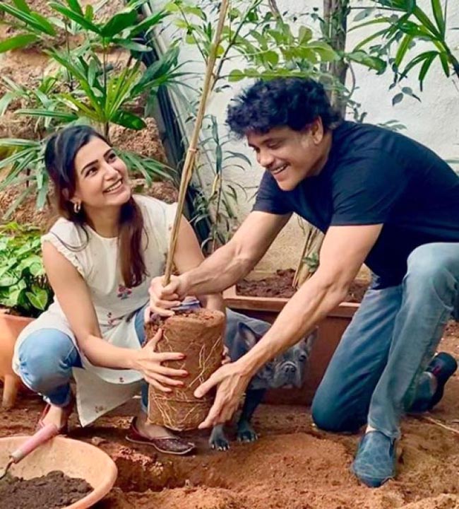 నాగార్జున విసిరిన గ్రీన్ ఇండియా చాలెంజ్ను యాక్సెప్ట్ చేసిన ఆమె ఆయనతో కలిసి మూడు మొక్కలను నాటింది. ఈ సందర్భంగా తీసిన పిక్చర్లను జూలై 11న తన ఇన్స్టాగ్రామ్ అకౌంట్ ద్వారా షేర్ చేసింది. ఆ ఫొటోల ప్రకారం మొక్కలను నాటడంలో సమంతకు నాగ్ సాయపడుతున్నారు. “I've accepted #HaraHaiTohBharaHai #GreenindiaChallenge from Nag mama. I planted 3 saplings.” అని ఆ పిక్చర్లతో పాటు పోస్ట్ చేసింది సమంత.