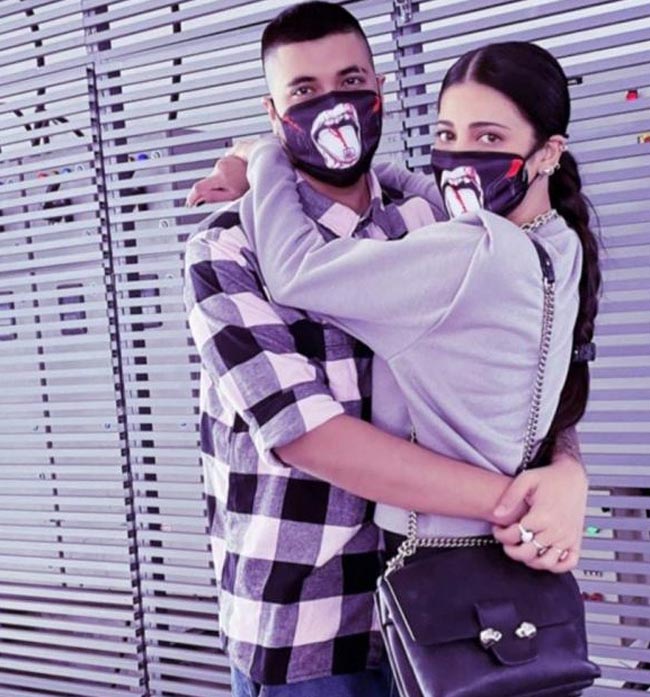 లేటెస్ట్గా ఆ ఇద్దరూ చెన్నైలో పబ్లిక్ అప్పీరెన్స్ ఇచ్చారు. ఒక క్లాతింగ్ సెంటర్కు షాపింగ్కు వెళ్లిన ఆ ఇద్దరూ నాలుక బయటపెట్టి వెక్కిరిస్తన్నట్లు డిజైన్ చేసిన ఒకే విధమైన ఫేస్మాస్క్లు ధరించి, ఒకరినొకరు హత్తుకొని ఫొటోలుకు పోజులు కూడా ఇచ్చారు. ఆ ఫొటోలను తమ సోషల్ మీడియా హ్యాండిల్స్ ద్వారా షేర్ చేశారు. చెన్నైకు వచ్చిన శంతనును శ్రుతి తన తండ్రి కమల్ హాసన్ వద్దకు తీసుకువెళ్లి పరిచయం చేసింది. శ్రుతి 35వ బర్త్డేకి ఆమెతో కలిసి దిగిన ఓ అందమైన ఫొటోను షేర్ చేసిన శంతను, దానికి "హ్యాపీ బర్త్డే ప్రిన్సెస్" అని క్యాప్షన్ జోడించడంతో, వారి మధ్య రిలేషన్షిప్ వేరే లెవల్లో ఉందని అందరికీ అర్థమైంది.