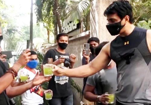 కరోనా కాలంలో ప్రజల పాలిట ఆపద్బాంధవుడిగా మారిన సోను సూద్ బయటనే కాదు, తను ఇంటి దగ్గర ఉన్నప్పుడు కూడా సేవాభావం వదిలి పెట్టడం లేదు. తాను సంపాదిస్తున్న దానిలో అత్యధిక భాగం ప్రజల కోసమే వెచ్చిస్తున్నాడు. వాళ్లకు అవసరమైన వస్తువులను సమకూరుస్తున్నాడు. ఎలా వెళ్లాలో దిక్కుతోచని స్థితిలో ఉన్న వలస కార్మికులను వాళ్ల ఇళ్లకు పంపిస్తున్నాడు. తాజాగా ఆయన తన ఇంటి బయట ఉన్న జనానికి, మీడియా ప్రతినిధులకు స్వయంగా సమ్మర్ సిరప్ అందిస్తూ కనిపించాడు.