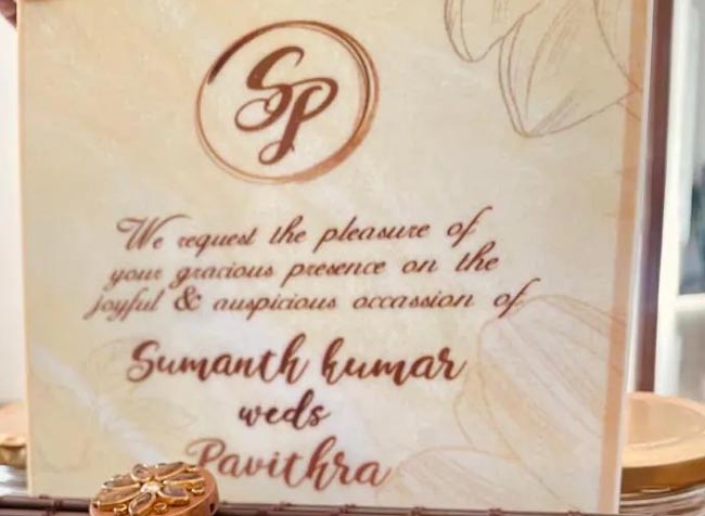 హీరో సుమంత్ రెండో పెళ్లి చేసుకోబోతున్నాడంటూ కొంత కాలంగా ప్రచారం జరుగుతూ వస్తోంది. ఇప్పుడది నిజం కాబోతోంది. పవిత్ర అనే యువతిని సుమంత్ పెళ్లాడుతున్నాడు. వధూవరులు సంయుక్తంగా సన్నిహితులు, స్నేహితులకు ఇన్విటేషన్ కార్డులను పంపారు. ఆ వెడ్డింగ్ కార్డుపై సుమంత్, పవిత్ర పేర్లను సూచించే ‘SP’ అనే అక్షరాలను ముద్రించారు. ఆడంబరాలకు పోకుండా సింపుల్గా ఈ వివాహాన్ని జరుపుతున్నారు.