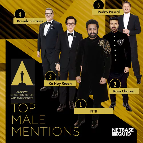 ఇక యాక్టర్స్ విషయానికి వస్తే హాలీవుడ్ స్టార్స్ ని సైతం వెనక్కి నెట్టి జూనియర్ ఎన్టీఆర్ టాప్ ప్లేస్ దక్కించుకున్నాడు. ఆ తర్వాతి స్థానంలో రామ్ చరణ్ నిలిచాడు. మొత్తానికి ఆస్కార్స్ సమయంలో మీడియా, సోషల్ మీడియాలో ఆర్ఆర్ఆర్ డామినేషన్ కనిపించింది.