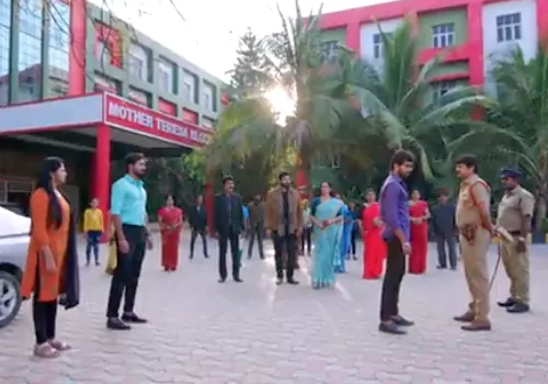 అలా కాసేపటికి వసుధారని బలవంతంగా తీసుకెళ్తుండగా రిషి అక్కడికి వస్తాడు. ఏంటి వసుధార ఏం జరుగుతుంది అని అడుగుతాడు. సర్.. నేను రానని చెప్పినా బలవంతంగా తీసుకెళ్తున్నాడని వసుధార చెప్తుంది. నేను నా భార్యని తీసుకెళ్తున్నాని రాజీవ్ చెప్తాడు. నేను రానని వసుధార అంటుంది. అలా కాసేపు ఇద్దరికి గొడవ జరుగుతుంది. ఇక రాజీవ్ వసుధార చేతిని పట్టుకోబోతుండగా రిషి అడ్డుపడతాడు. "ఏంటి రిషీ సర్.. ఈ ట్విస్ట్" అని రాజీవ్ అనగా.. "అసలు ట్విస్ట్ నేను కాదు వాళ్ళు ఇస్తారు అటు చూడు" అని పోలీసుల వైపు తోసేస్తాడు. దీంతో రాజీవ్ షాక్ అవుతాడు. నేనేదో నా భార్యని తీసుకెళ్తుంటే ఇలా చేస్తున్నారు సర్ అని రాజీవ్ చెప్పగా.. "తాళి కట్టకుండా ఎలా తను నీ భార్య అవుతుంది రా" అని SI రాజీవ్ కాలర్ పట్టుకొని అంటాడు. ఇక రాజీవ్ దగ్గర సమాధానం లేక మౌనంగా ఉండిపోతాడు. ఆ తర్వాత రాజీవ్ ని పోలీసులు తీసుకెళ్తారు.