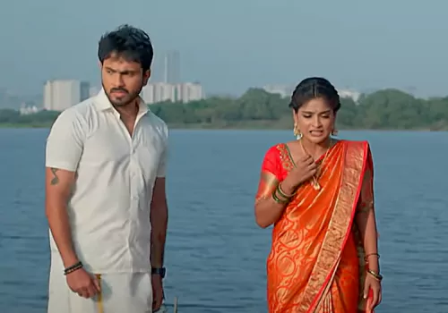 మరొకవైపు కళ్యాణ్ దగ్గరకి ప్రేమని అమ్మాలనుకుంటున్న అతను, కొంతమంది రౌడీ లతో వస్తాడు. డబ్బులు ఇంకా ఎక్కువ కావాలని కళ్యాణ్ అనగానే తన పీకపై కత్తి పెట్టి అతను బెదిరిస్తాడు. దాంతో కళ్యాణ్ అతనిపై కోపం తో పోలీసులకి ఫోన్ చేసి హోటల్ లో ఒక అమ్మాయితో ప్రాస్టిట్యూషన్ చేపిస్తున్నారని చెప్తాడు. ఆ తర్వాత ధీరజ్, నర్మద, వేదవతి లు వస్తుంటారు. అప్పుడే సడన్ గా ధీరజ్ కి కళ్యాణ్ డాష్ ఇస్తాడు. నువ్వేంటి ఇక్కడ ప్రేమ ఎక్కడ అంటూ కొడతాడు. దాంతో కళ్యాణ్ భయపడి ప్రేమ హోటల్ లో ఉంది. ఇప్పుడే పోలీసులకి ప్రాస్టిట్యూషన్ జరుగుతుందంటూ చెప్పానని చెప్పి కళ్యాణ్ తప్పించుకుంటాడు. వెంటనే ధీరజ్ వాళ్ళు హోటల్ కి వెళ్తారు.