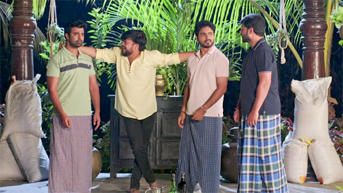 మరొకవైపు ఇంట్లో రామరాజు లేడని తిరుపతి సిట్టింగ్ ఎరేంజ్ చేస్తాడు. ధీరజ్, సాగర్, చందు ముగ్గురు లుంగీ కట్టుకొని వస్తారు. మందుకి లుంగీకి మంచిగా సెట్ అయిందని తిరుపతి అంటాడు. చందు డల్ గా ఉంటాడు. ఏమైందని వాళ్ళు అడుగగా అమూల్య విషయం చెప్పలేక.. నాన్న తాగితే ఏమైనా అంటాడేమోనని కవర్ చేస్తాడు.