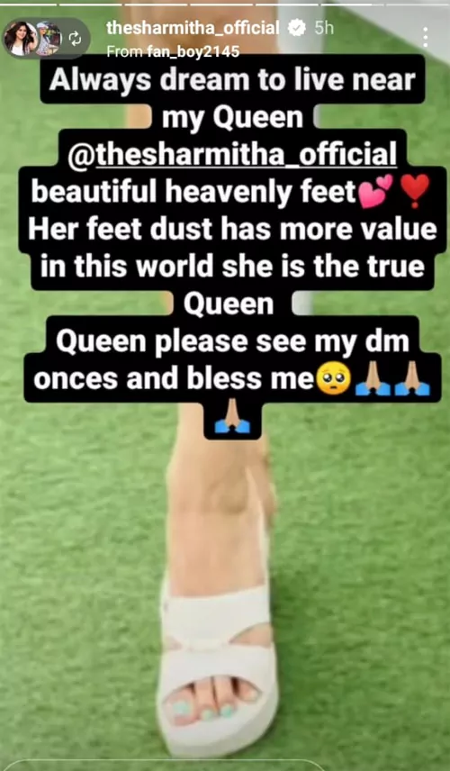 అయితే రుద్రాణి అలియాస్ షర్మిత గౌడ సీరియల్ లో కనిపించే శైలికి బయట ఉండేదానికి చాలా తేడా ఉంది. కొన్నిరోజుల క్రితం సమ్మర్ వెకేషన్ కి వేరే దేశం వెళ్ళి అక్కడ స్విమ్ డ్రెస్ లో ఫోటోలు దిగి వాటిని ఇన్ స్టాగ్రామ్ లో అప్లోడ్ చేసింది షర్మిత గౌడ. అయితే సీరియల్ లో చీరకట్టుతో సంప్రదాయంగా కనిపించే రుద్రాణి.. బయట అలా కనిపించడంతో అప్పుడు తను చేసిన ఆ పోస్ట్ వైరల్ గా మారింది. అయితే తాజాగా తన అభిమాని ఒక ఫోటోని షర్మిత గౌడకి ట్యాగ్ చేసాడు. తన కాలికి ఉన్న దుమ్ము కూడా విలువైనదే.. ఎప్పుడు తనకి దగ్గరగా ఉండాలని ఉందని ఆ ఫోటోకి క్యాప్షన్ గా ఆ అభిమాని రాసాడు. దాంతో ఆ పోస్ట్ చూసి గొప్పగా భావించిన షర్మిత గౌడ తన ఇన్ స్టాగ్రామ్ పేజ్ లో షేర్ చేసింది.