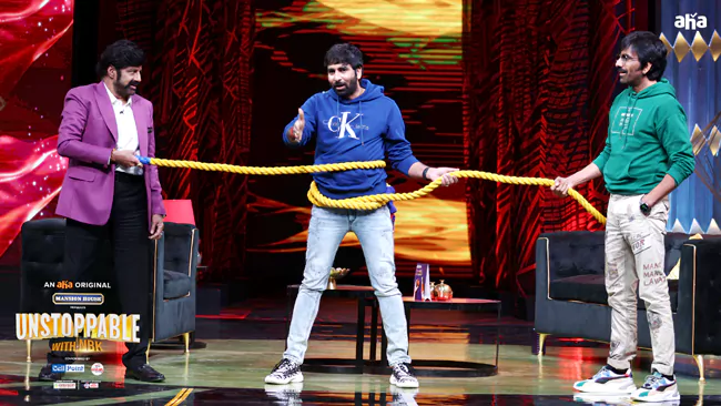కాగా ఆరో ఎపిసోడ్లో 'క్రాక్' జోడీ రవితేజ, గోపీచంద్ మలినేని గెస్టులుగా కనిపించనున్నారు. దీనికి సంబంధించిన కొన్ని ఫొటోలను ఆహా తన సోషల్ మీడియా హ్యాండిల్స్ ద్వారా షేర్ చేసింది. ఈ ఫొటోల ప్రకారం బాలయ్య తన గెస్టులతో గేమ్లు కూడా ఆడినట్లు అర్థమవుతోంది. ఒక తాడును గోపీచంద్ నడుముకు చుట్టి, అతడిని మధ్యలో నిలబెట్టి, తాడు ఒక కొసను తను పట్టుకొని, రెండో కొసను రవితేజ చేతికి అందించారు బాలయ్య. గోపీచంద్ను ఆయన ఎలా ఆడుకుంటాడనేది ఈ నెల 24న స్ట్రీమింగ్ కానున్న ఎపిసోడ్లో మనకు తెలుస్తుంది. అన్నట్లు గోపీచంద్ డైరెక్షన్లోనే తన నెక్ట్స్ మూవీని చేయనున్నాడు బాలయ్య.