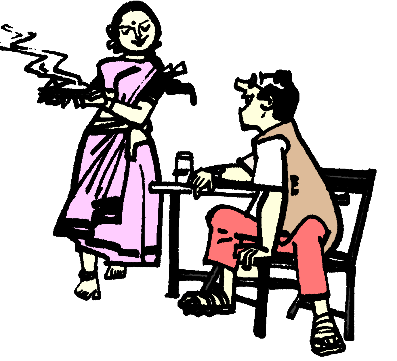 “సావాలమ్మ అమ్మ మాత్రం.....”అని అనంతం అనుబంధ ప్రశ్న వేసేటంతలో ఓ అందమైన అమ్మాయి చకచకా వచ్చి “అల్లం పెసరట్టాండి? ఉల్లిపాయా? లేపోతే రెండూ కలేసి ఏసేయమంటారా?” అనడిగింది హుషారుగా.