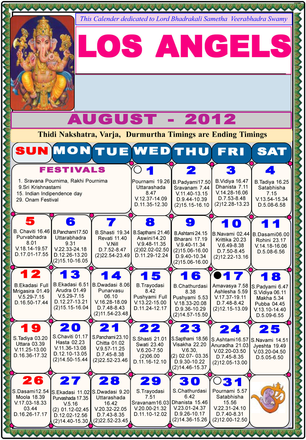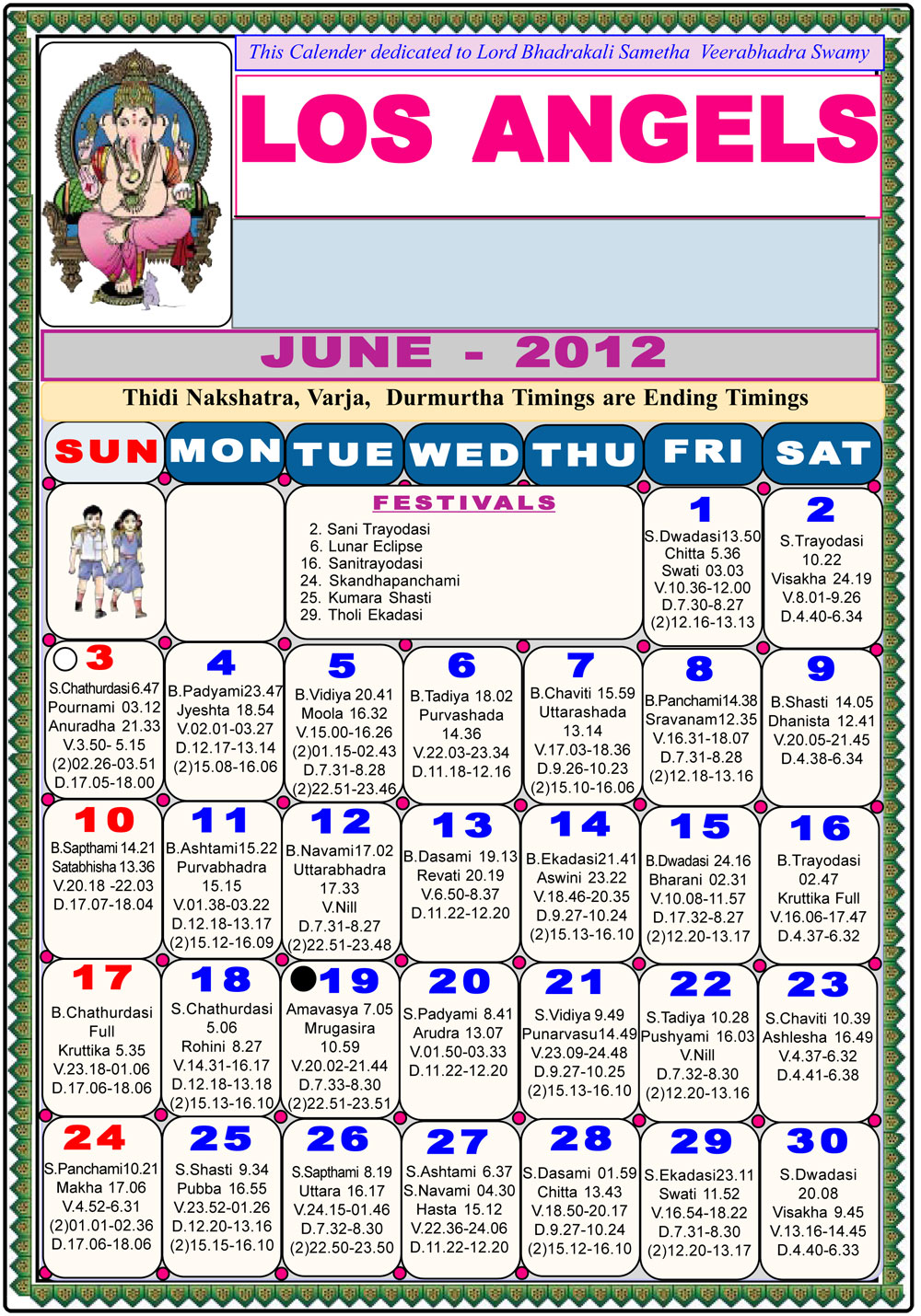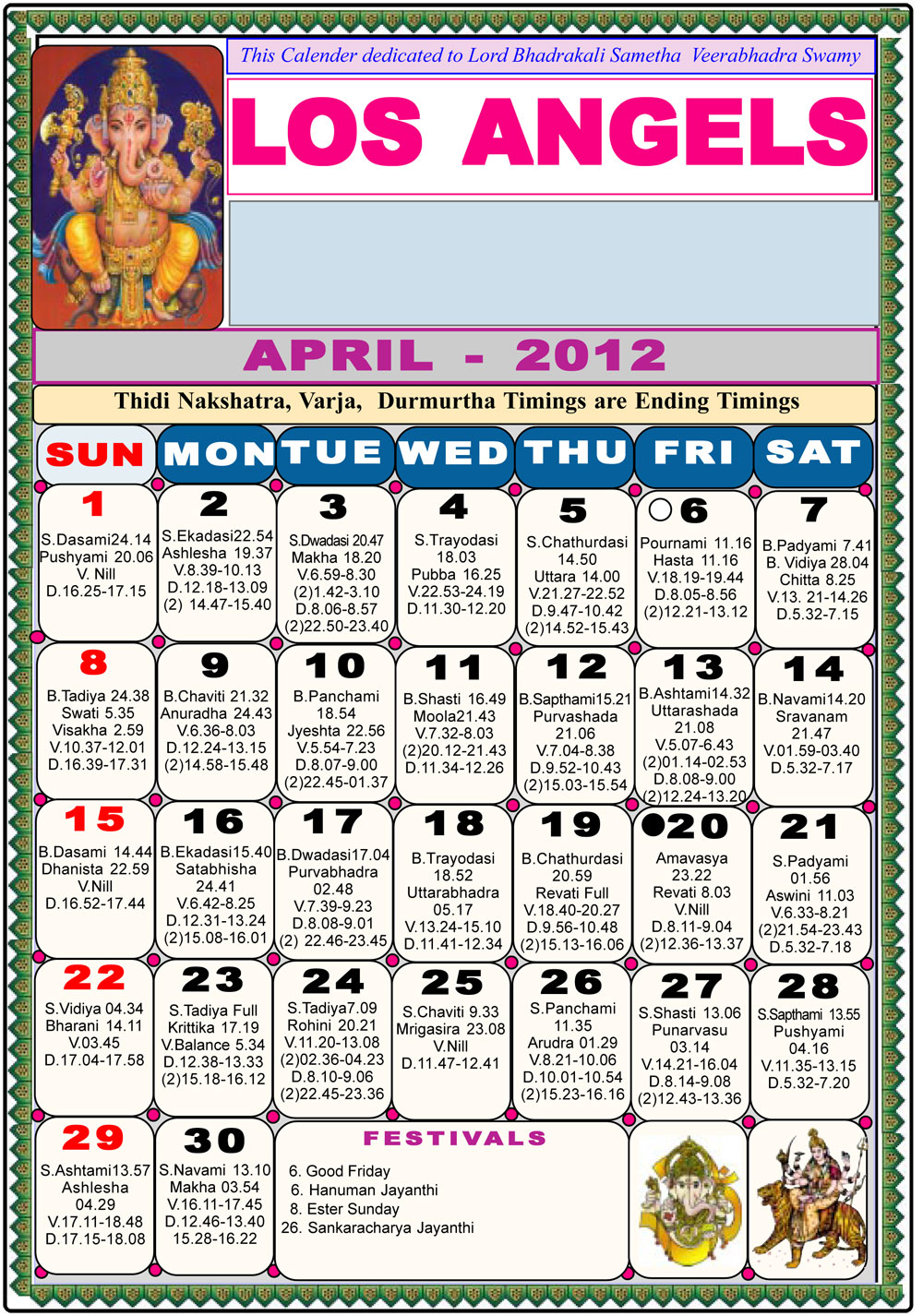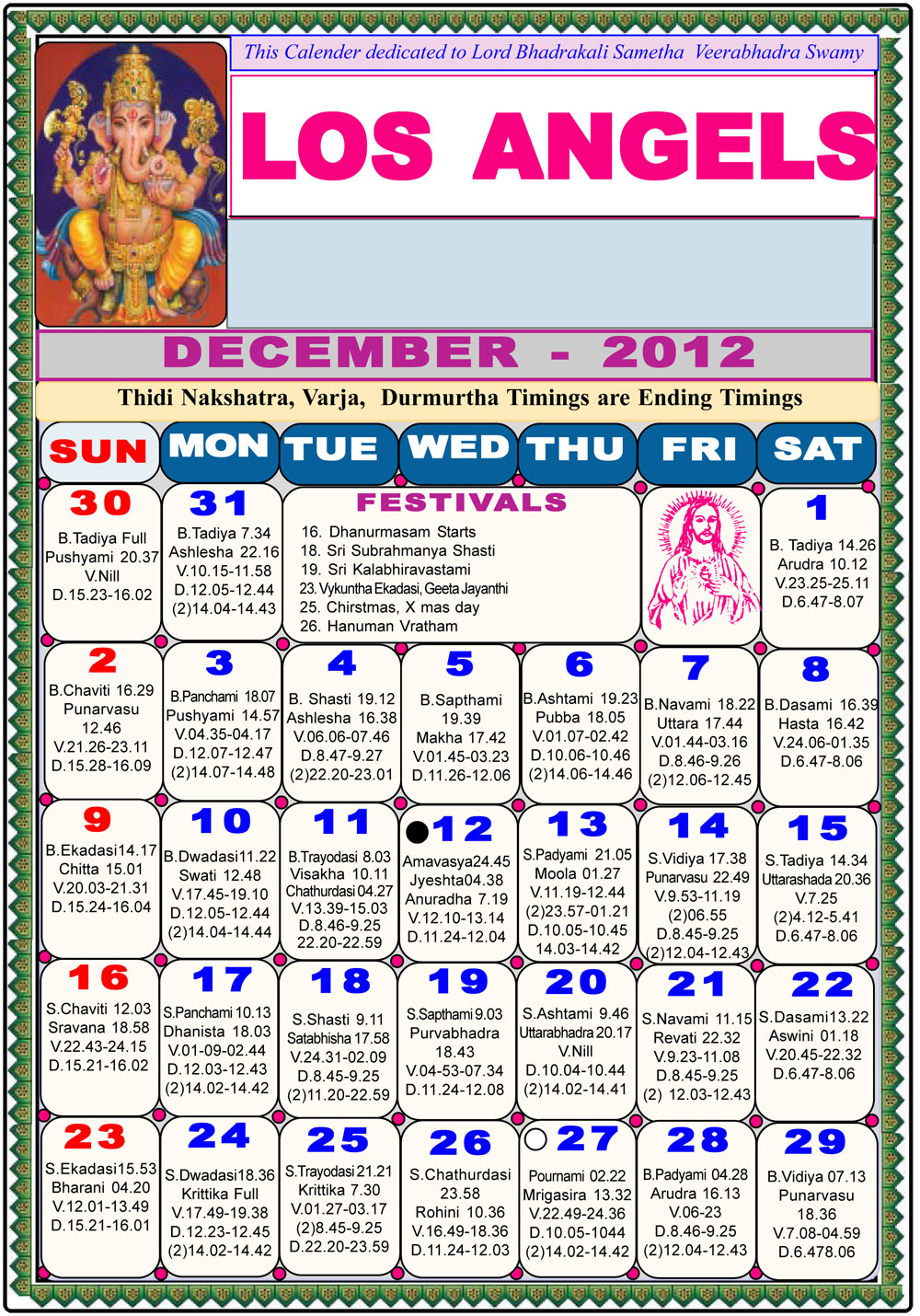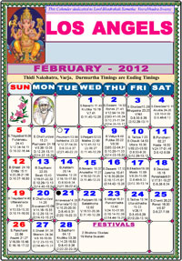 Los Angeles Telugu Calendar 2012