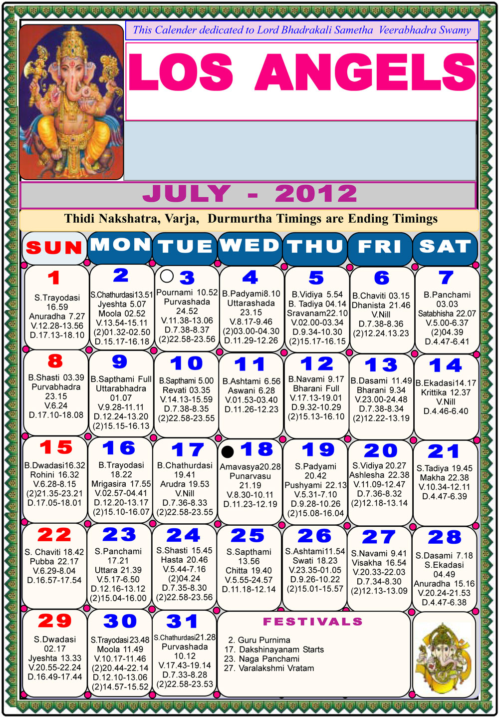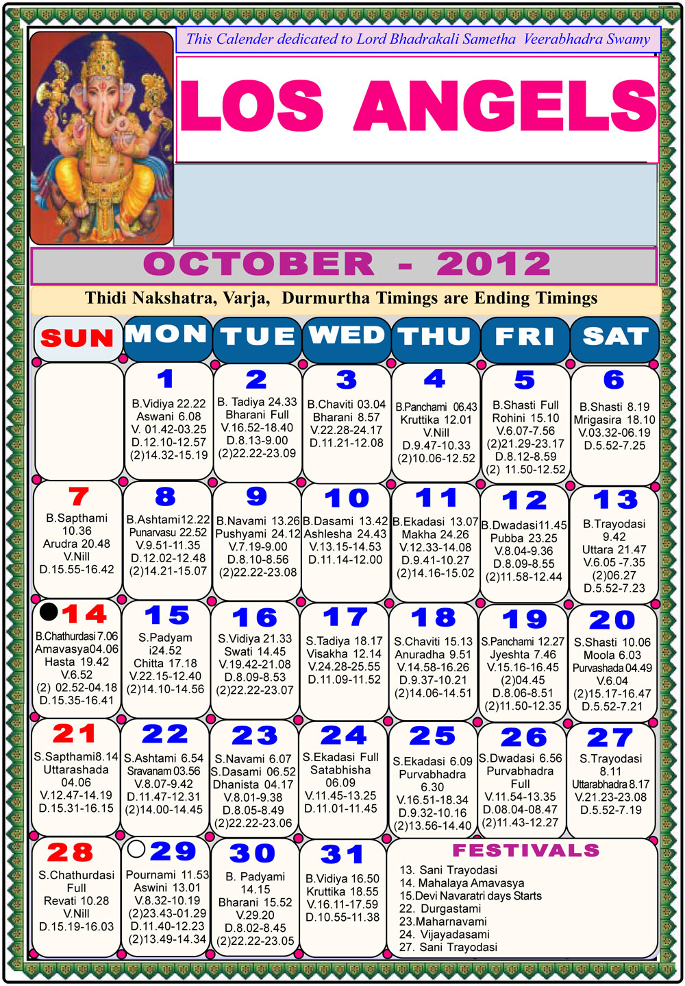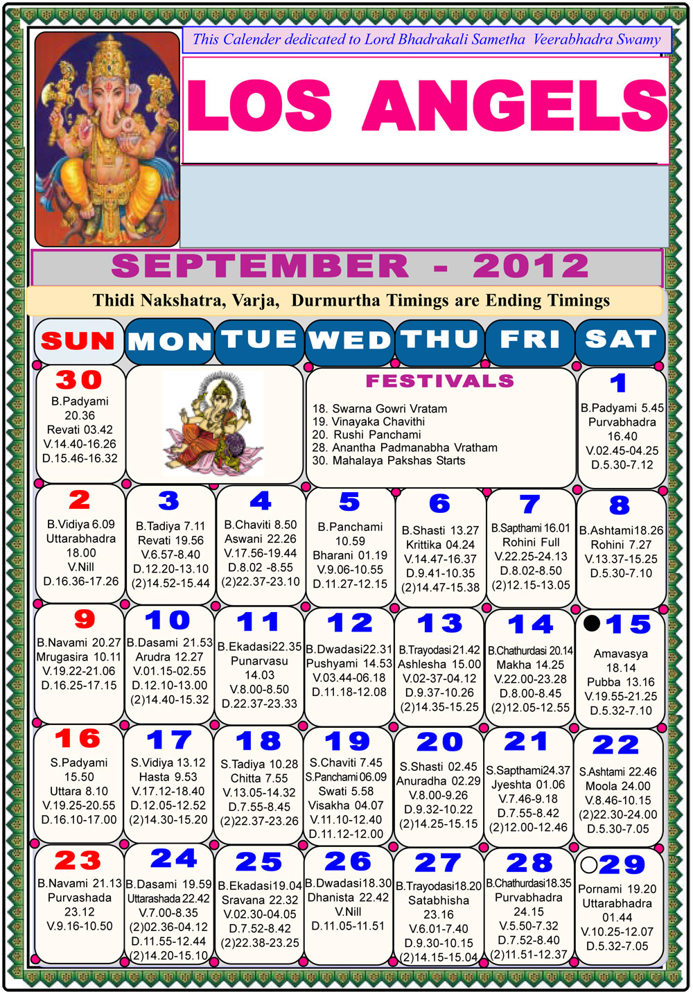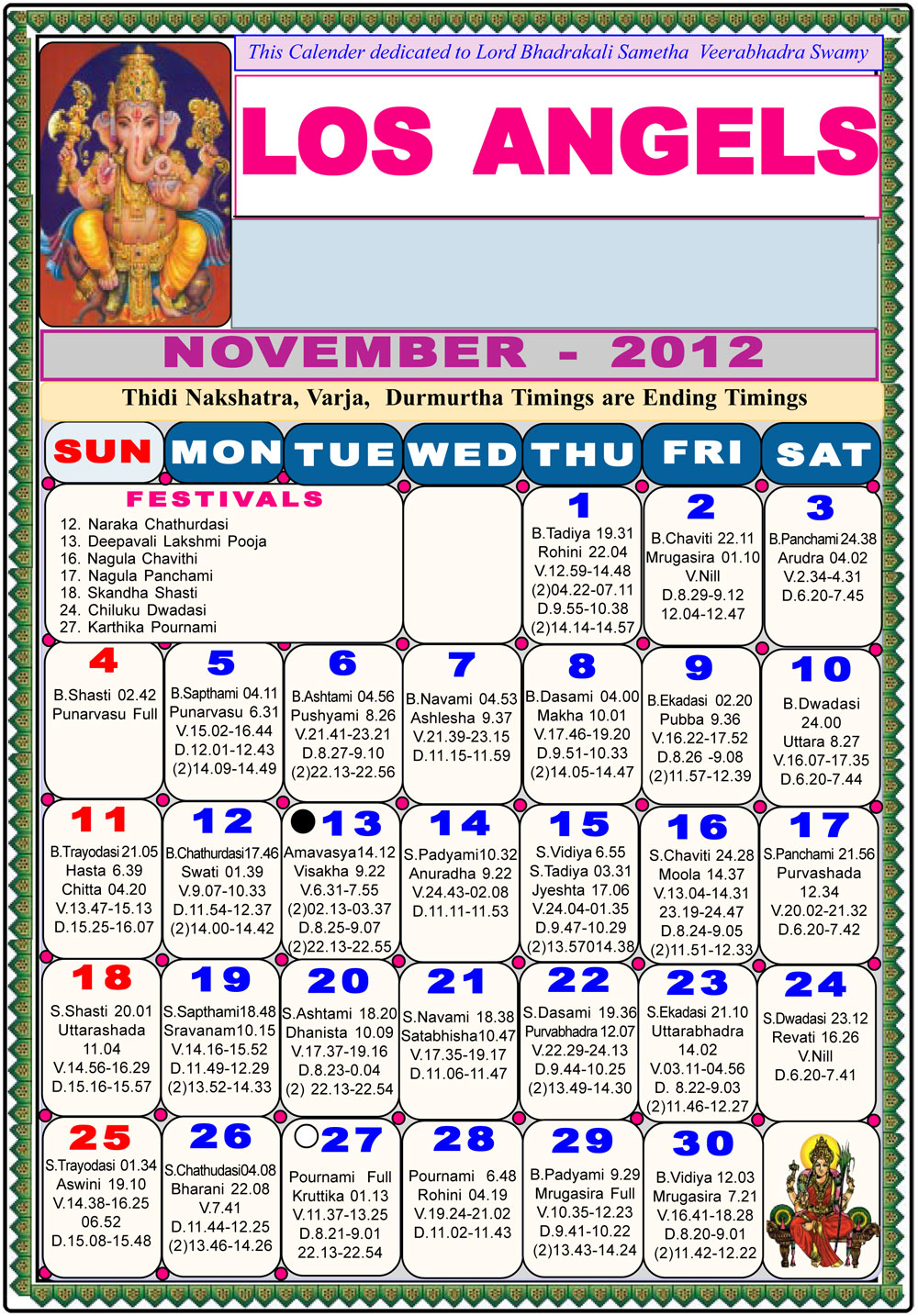 Los Angeles Telugu Calendar 2012