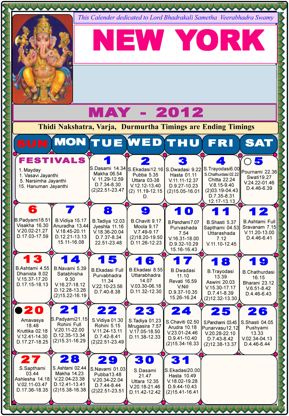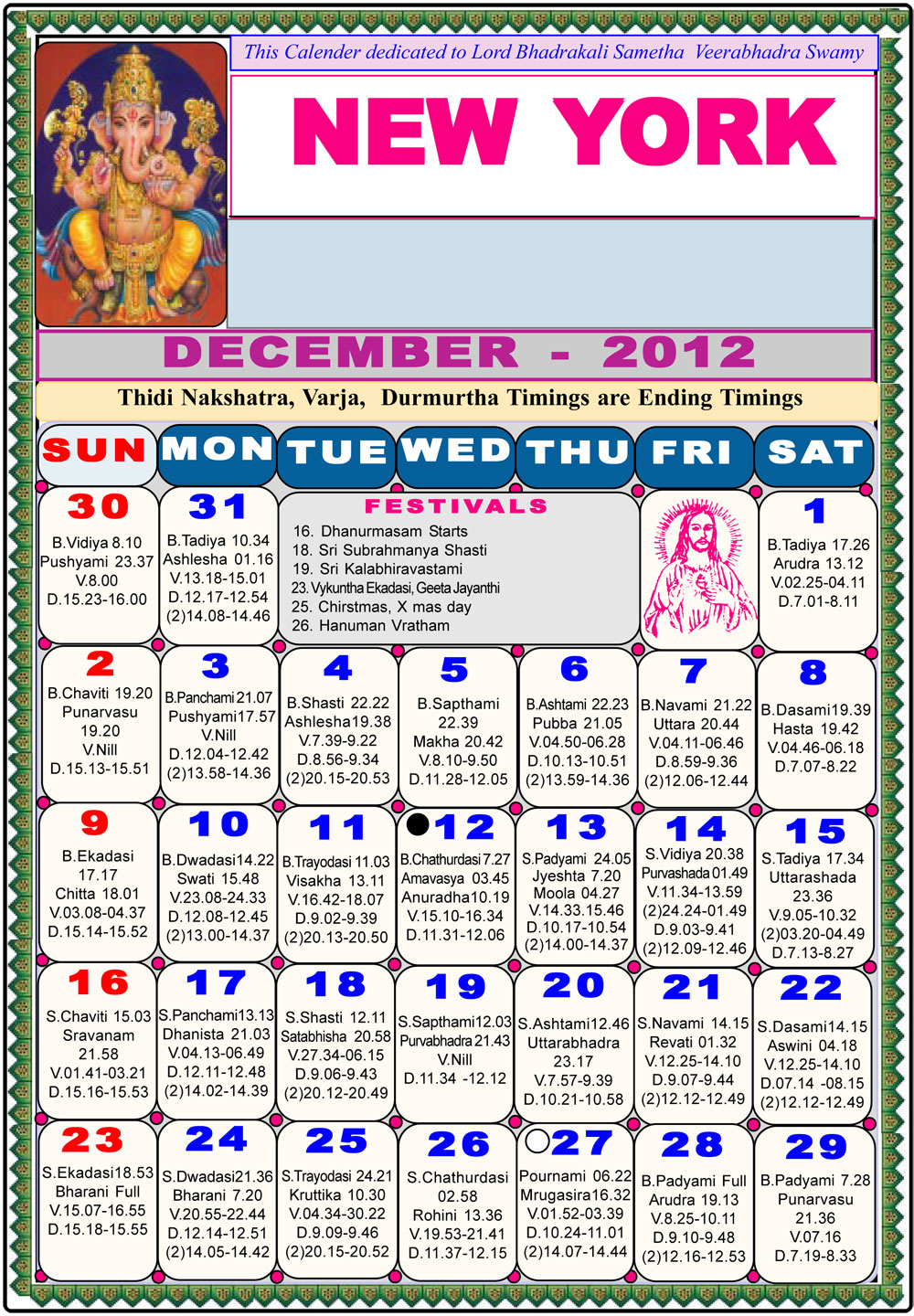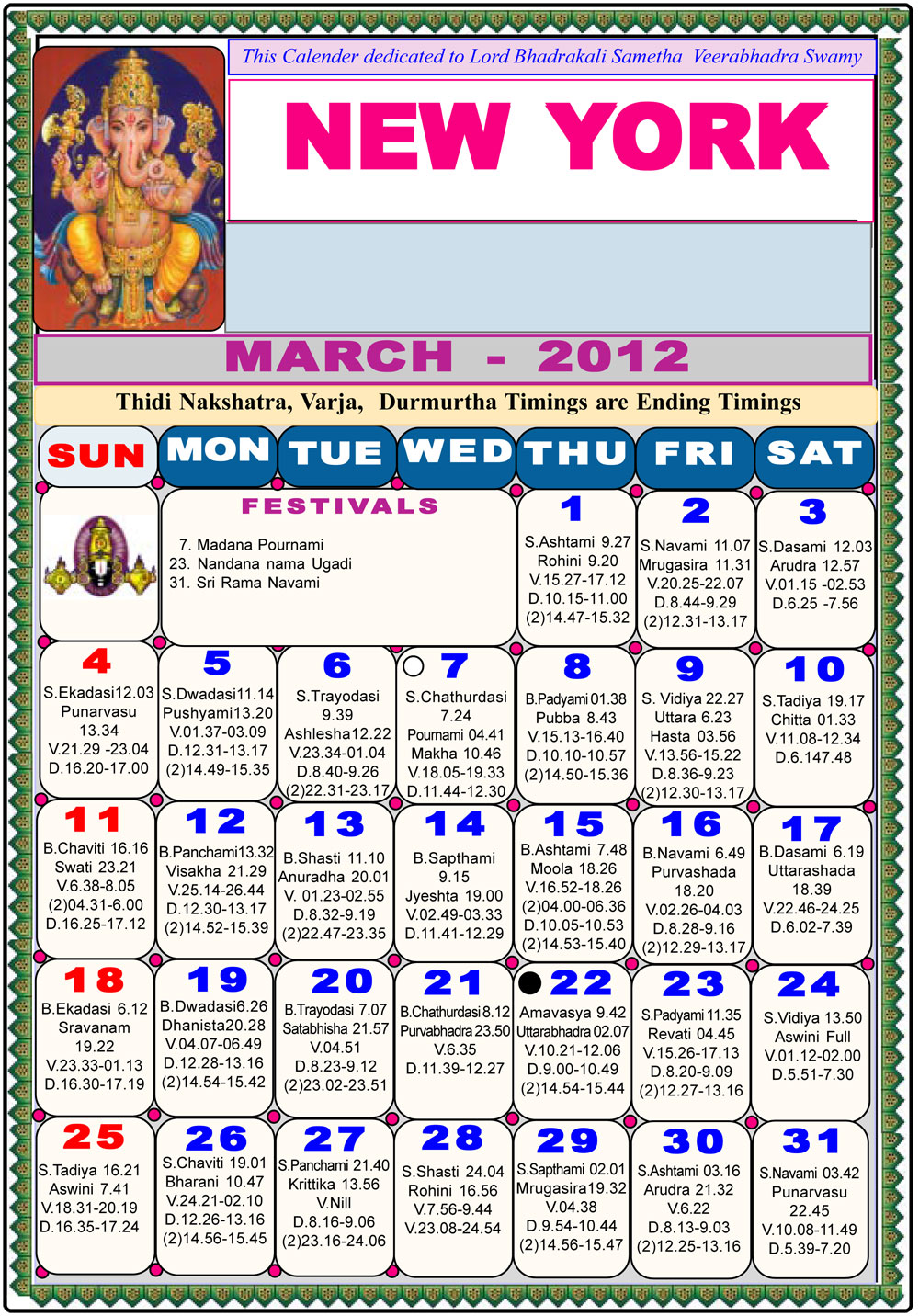 New York Telugu Calendar 2012