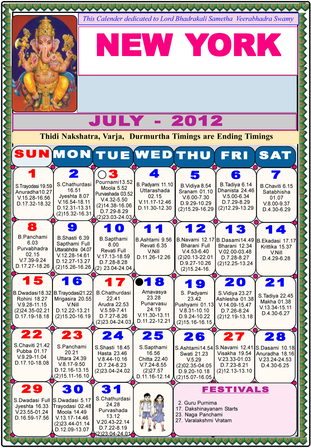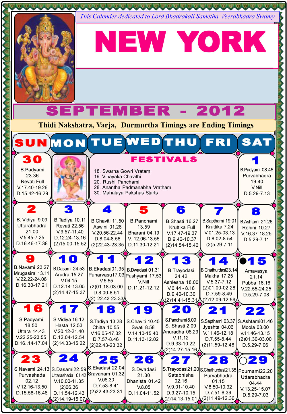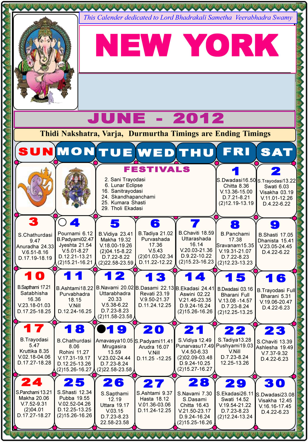 New York Telugu Calendar 2012