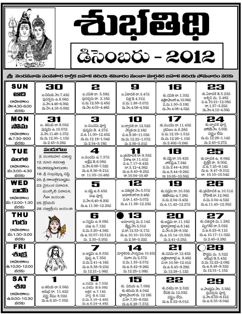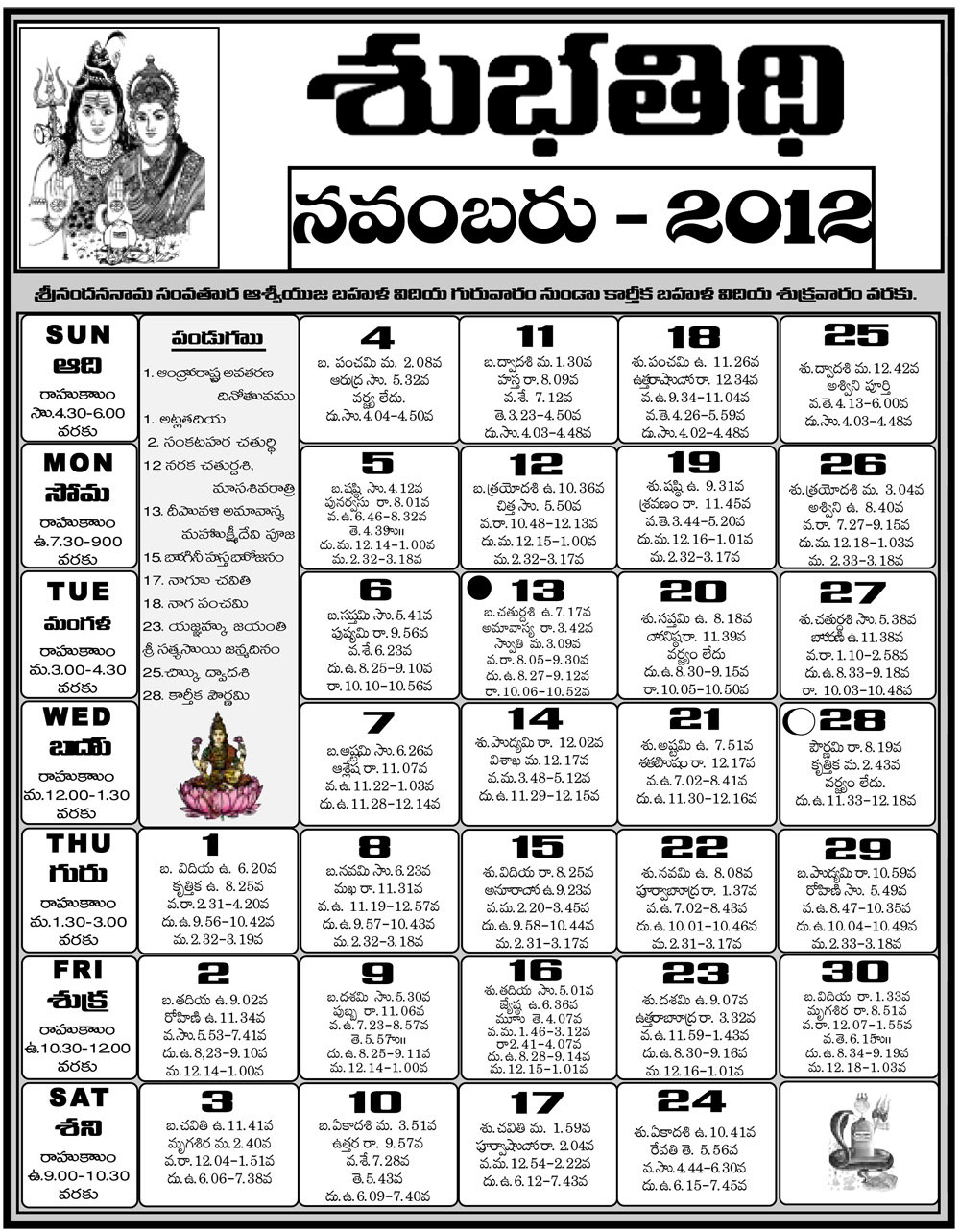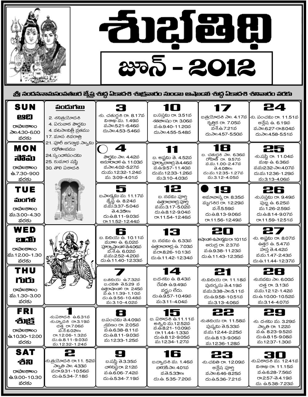 Telugu 2012 Calendar