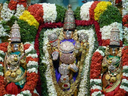 కోదండరామస్వామి, శ్రీవేంకటేశ్వర స్వామివారి వలె దర్శనమిస్తారు. శ్రీవేంకటేశ్వర స్వామి వారి వక్షస్థలాన శ్రీమహాలక్ష్మి సీతామాత వలెనూ, స్వామివారి నాగాభరణాలు శ్రీలక్ష్మణస్వామివారి వలెనూ, మధ్యనున్న కోదండస్వామి శ్రీవారి వలెనూ అవతరించగా వైకుంఠ ద్వారాలను తలపింపచేసేలా సువర్ణమయమైన ఈ గర్భగుడి ద్వారముల ముందు జయవిజయులు ద్వారపాలకులై సాక్షాత్ శ్రీ మహాలక్ష్మీ ఆదిశేషుని సమేతుడైన శ్రీహరిని తలపించేలా ఉంది.