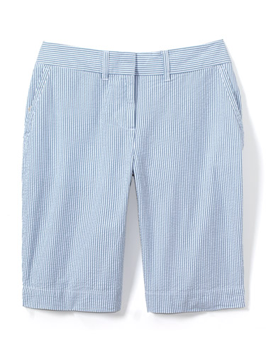 * Old Navy Sateen Shorts, Vertical stripes elongate and slim. Worried that the longer inseam will overwhelm your frame? Wear sandal wedges for a flattering height boost.