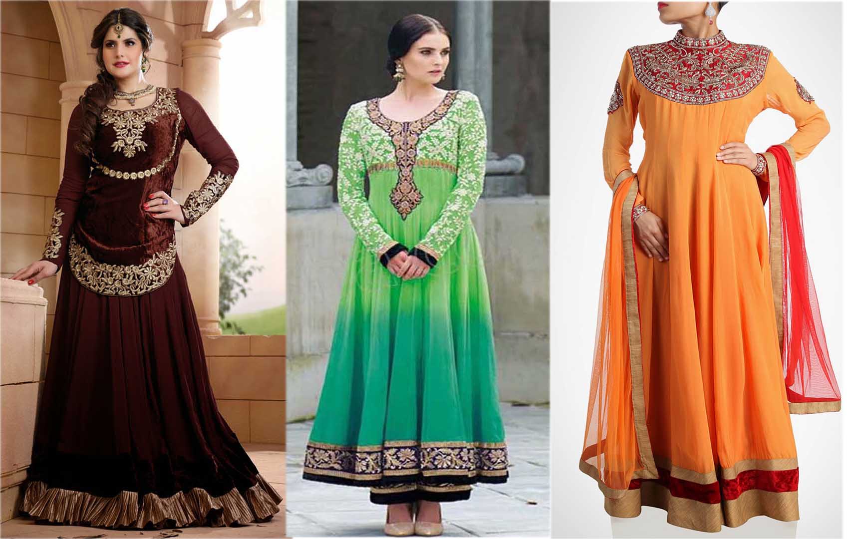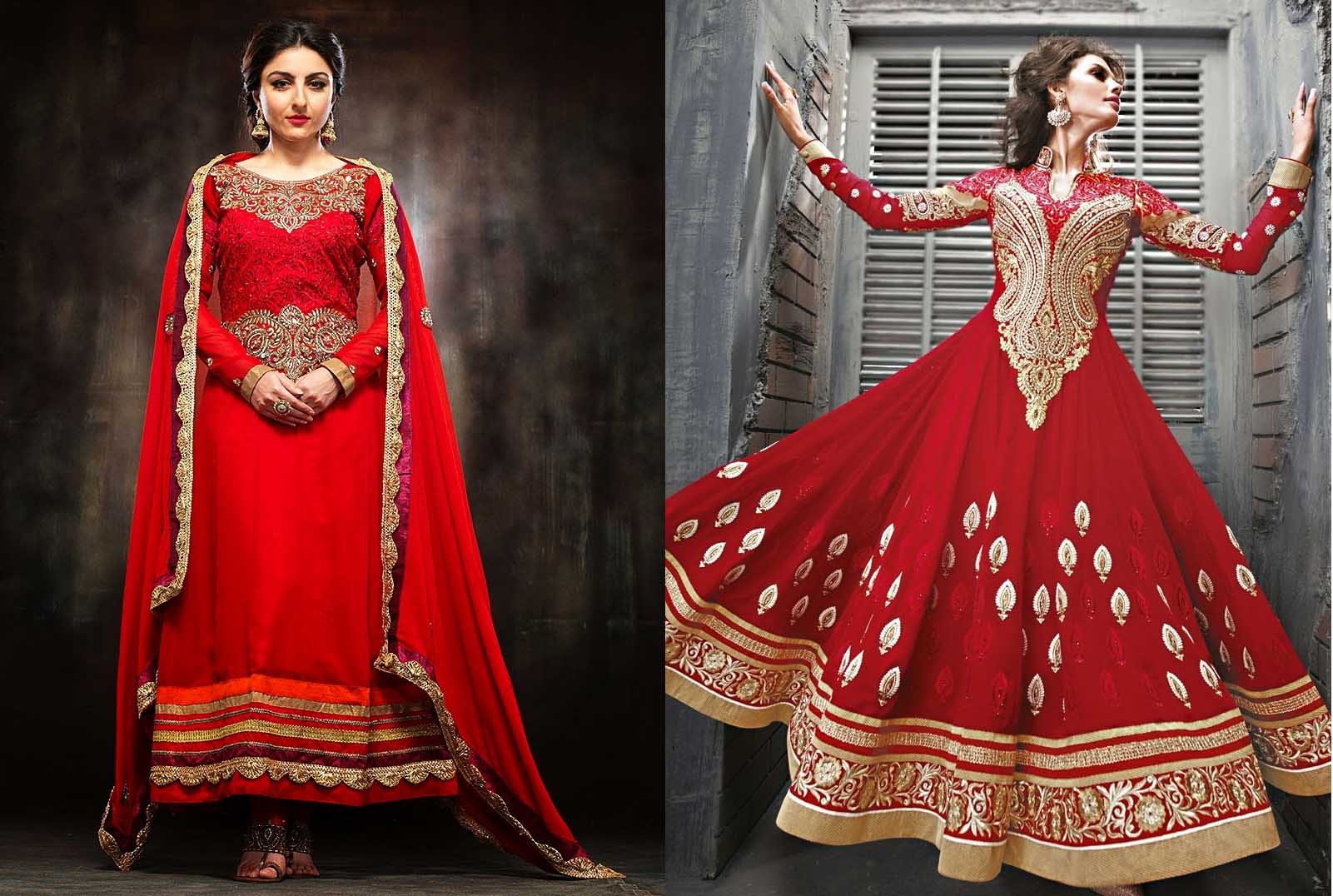 The latest trends which are the Anarkalis and the ankle length floor gown Anarkalis are the best buy this festive season. Choose the bright colours of red, maroon, yellow, peacock blue, with the choicest of heavy embroidery ,is what we recommend for those who like to make a bold statement.