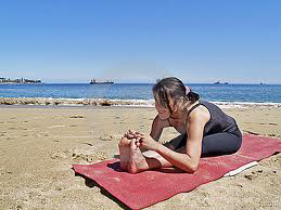 - Deeply inhale and while exhaling bend forward and hold the big toes by corresponding hands, and keep the face on the knees.