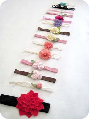 DIYers are making the most innovative head bands for baby girls and newborns, some with used T-shirts, Satin ribbons, soft jute fabric, silk threads, wool, and everything soft and knittable for the extremely soft heads. Embellishments are Pearly beads, buttons, soft decorative flowers, crochetted flowers, some artists are even using fresh flowers to weave an instant headband...when are you trying your hand at it?!