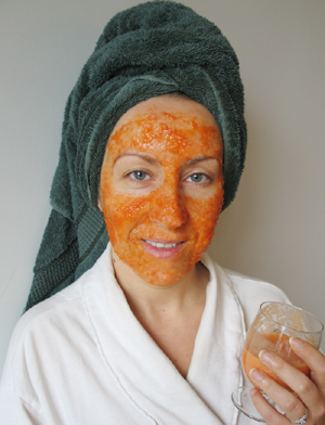 Step-4 - Papaya Massage: After the bleach and scrub session , its time for some pampering. Take a really ripe Papaya, some honey and lemon juice and make this into a nice a squishy paste. Apply this on your skin and again massage this yummy paste in circular motion for about a good 7- 8 minutes. You could sit in front of the TV with a cloth covering yourself and your sofa and do this.